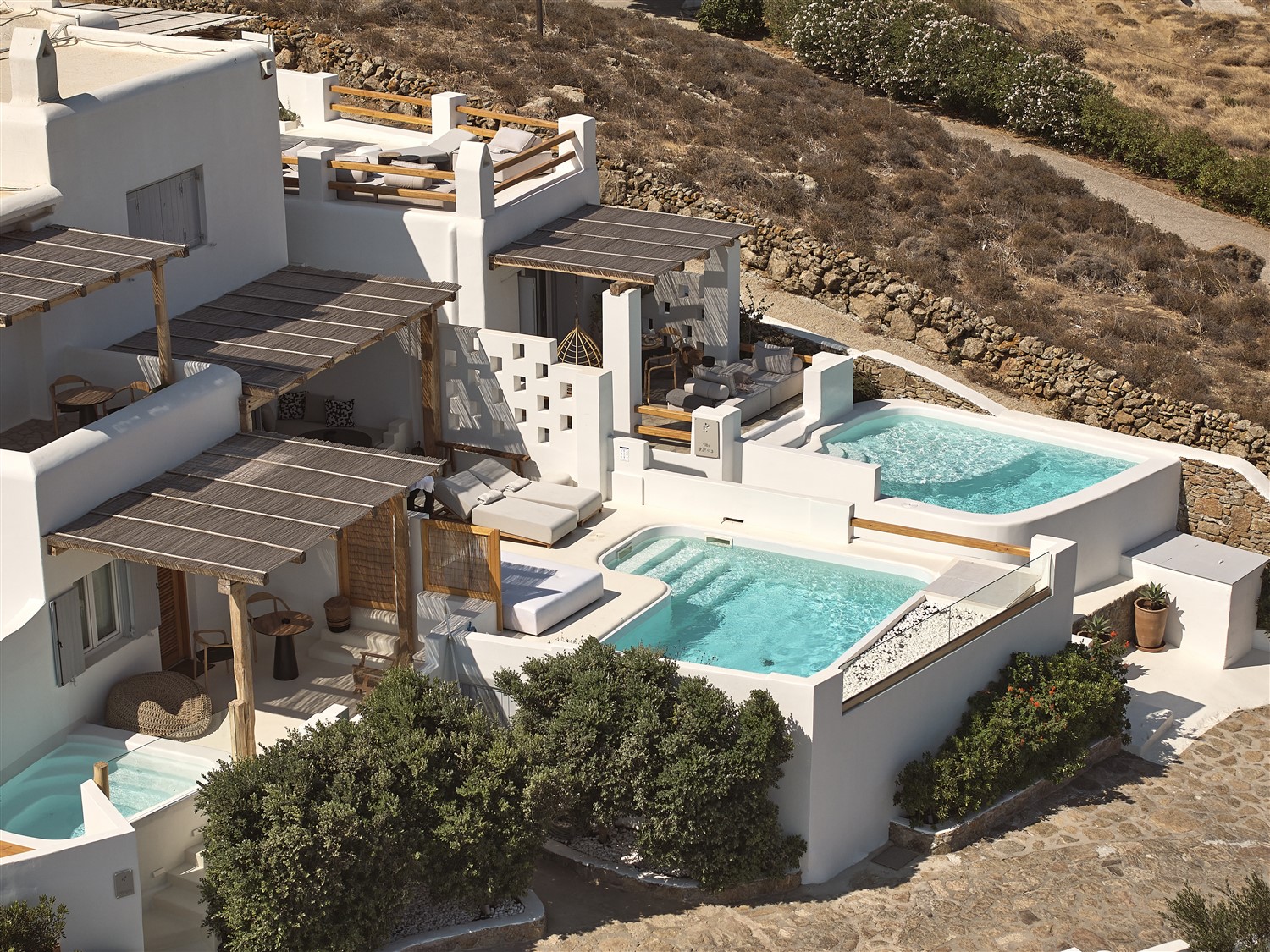 Perched on the east coast, overlooking tourlos bay, and only 800m from Mykonos town, Sharm hotel Mykonos offers a distinctive Collection of luxury villas and suites, each with its own unique Identity and style, catering to every group size and holiday occasion.