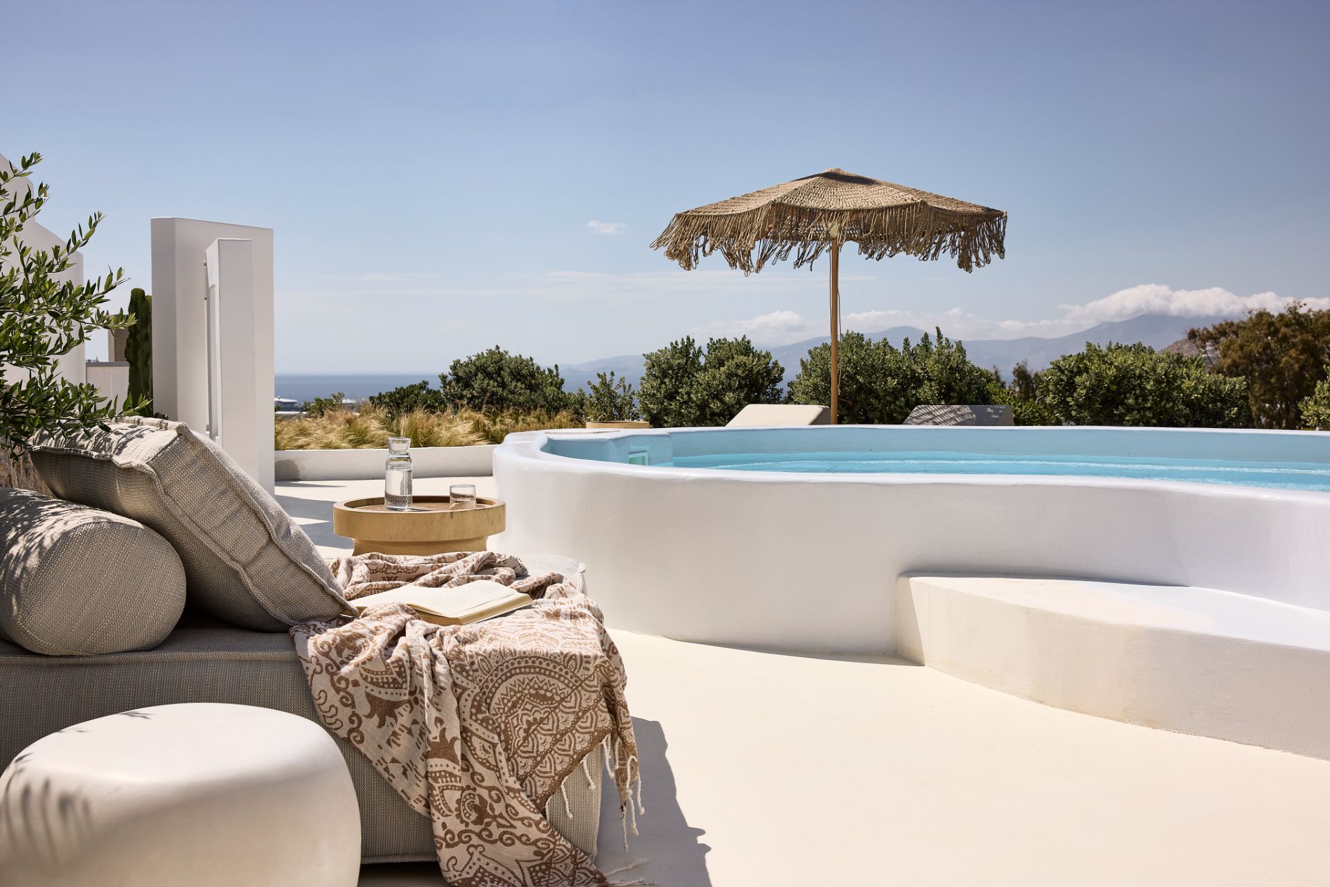 Crafted for those seeking a romantic escape, the re-awakened Delos Design Suite is lined with natural materials, bespoke furnishings and unique design pieces. Boasting a king-sized bed with a luxurious walk-in sea view shower, Delos Design Suite opens out to an expansive outdoor terrace, and private plunge pool with majestic sea views of the Aegean Pelago.
